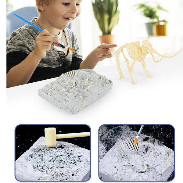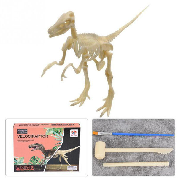 Contains the skeleton pieces and archaeological hammer, brushes, glasses, chisel, mask and sponge