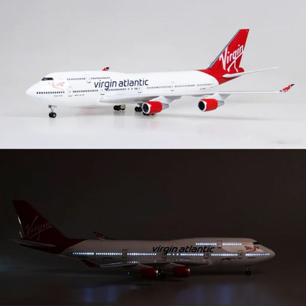 Take to the skies with this stunning reproduction of the 747. They have a hard resin body, plastic wings and a hard wooden base. At night the plane can be switched on and with a clap or a light touch of the aircraft all the internal lights luminate. The aircraft can be recharged using a micro USB lead (Not included).
