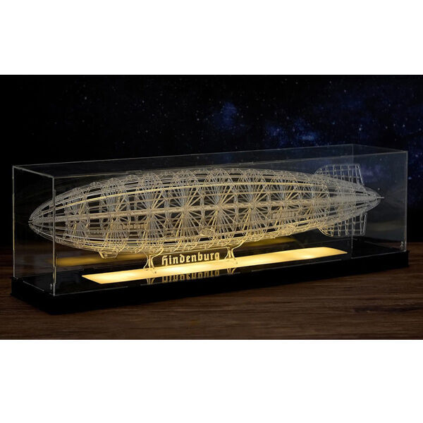 The 1/453 Dancing Wings Hobby Hindenburg Kit (VS38) with acrylic light box is a striking display model that brings the legendary LZ 129 Hindenburg to life in both form and illumination. Measuring 540mm (23.5 inches) in length when assembled, this kit features a precision engineered framework constructed from laser cut acrylic, capturing the airship’s iconic rigid structure in fine detail.