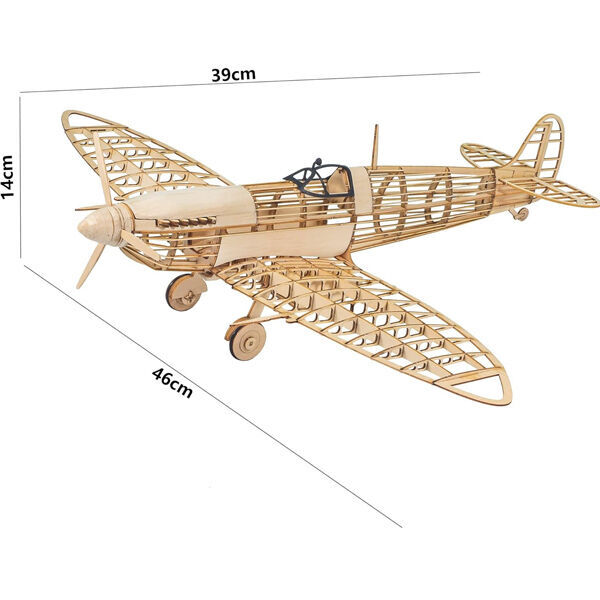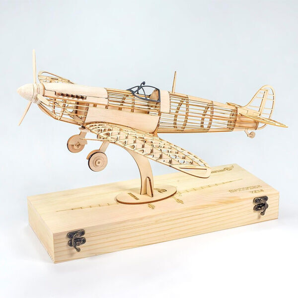 The 1/25 Dancing Wings Hobby Spitfire Fighter Wood Kit VX18 is a beautifully crafted model designed to capture the essence of the iconic Supermarine Spitfire, one of the most renowned fighter aircraft of World War II. With a wingspan of 460 mm (18.11 inches), this laser-cut wooden kit provides exceptional detail and accuracy at a manageable scale.  It features intricate details, including precisely designed wing shapes, tail surfaces, and fuselage contours, staying true to the original aircraft’s iconic silhouette.  Perfect for aviation enthusiasts and model builders, this kit celebrates the engineering and legacy of one of history’s most legendary fighters.
