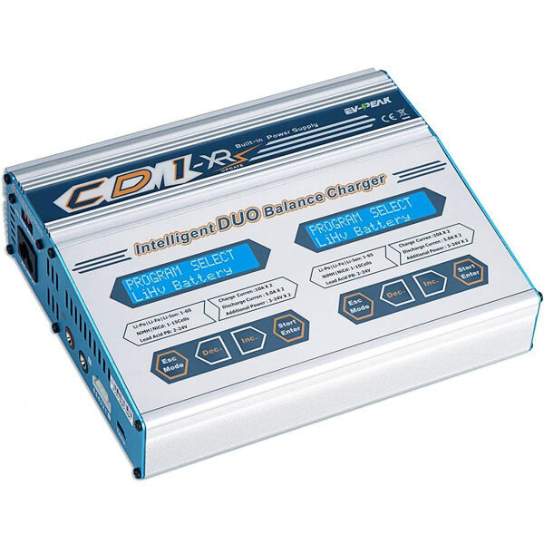 CD1-XR charger is an AC/DC DUO balance charger/discharger,it supports 1-6 cells LiPo/LiHV/LiFe batteries and 1-15 cells NiMH/NiCd batteries,maximum 10A charge per channel.