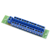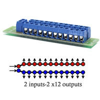 There are 2 connectors for the input of voltage and 2 x 12 connectors for the outputs on the distributor