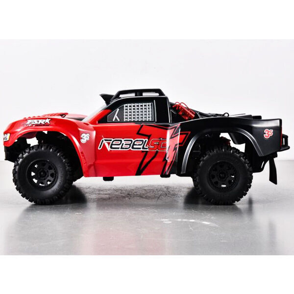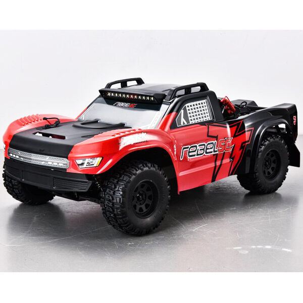 Precision aluminium/nylon chassis now with centre support bar, tough steel drive train and nylon materials come together for an easy-to-maintain, super strong vehicle design, that will provide years and years of durability. This short course truck provides impressive life like performance now with a faster motor and larger ESC that will make you feel like you’re really smashing through the dunes of the Baja! The NEW centre locker diff with delrin main gear keeps the power equal to the front and rear diffs. High Grip block SC tyres on black aggressive spoke wheels, coupled with an aggressive SC body, make for an impressive short course truck package which is ready to race straight out of the box