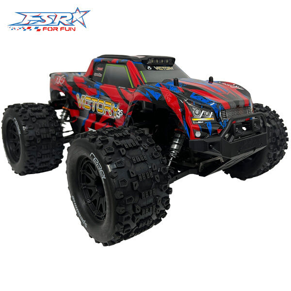 The FS Racing Victory MT has been designed to cater for people just beginning their brushless RC journey, through to the most experienced RC expert. It’s made to take a hammering with it’s solid nylon chassis with full metal drivetrain and plastic roof skids. It has no problems delivering the power the 3S battery provides the 2500KV brushless motor, to the ground, with high grip MT wheels and tyres. With oil filled, full aluminium adjustable shocks, fitted to each corner, this truck will handle whatever terrain you can throw at it. It is fitted with high intensity LEDs at the front and back and a roof mounted light bar, which will help illuminate your way no matter where you are.