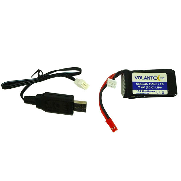 Battery: 2S 7.4V 500mAh LiPoly Battery