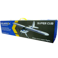 The micro-sized Super Cub comes completely ready to fly, including everything in the box needed to fly right down to the AA transmitter batteries. Molded of EPO foam, the Super Cub is scale in appearance and durable to boot! Full house controls and a steerable tail wheel make the Super Cub an aerobatic touch and go machine. The 2808 brushless motor and 2S 7.4V 500mAh LiPoly battery provide the Super Cub with ample power and flight duration for long park flying sessions.