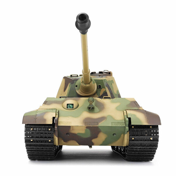 This is a RC 1/16 ready to play Germany King Tiger Henschel turret battle tank. This is a 1/16 real tank in action featuring a realistic caterpillar and suspension system that allows pivot turning like a real tank. The tank also features realistic recoil action and the turret can turns about 320 degree.