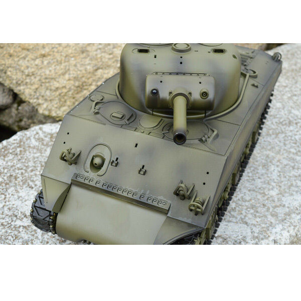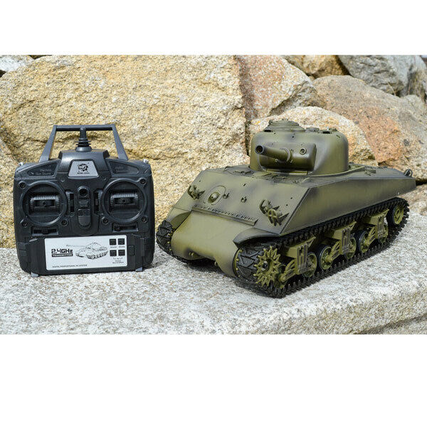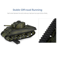 Evolved from previous medium and light tanks, the M4 Sherman was the primary tank used by the United States during World War II. As a vivid replica, this RC tank with independent torsion bar suspension can clear obstacles and travel up steep hills easily.