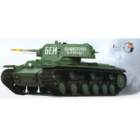 The Kliment Voroshilov (KV; Russian: Климент Ворошилов, КВ) tanks are a series of Soviet heavy tanks named after the Soviet defence commissar and politician Kliment Voroshilov who operated with the Red Army during World War II. The KV tanks were known for their heavy armour protection during the early stages of the war, especially during the first year of the German invasion of the Soviet Union. In certain situations, even a single KV-1 or KV-2 supported by infantry could halt German formations. The German Wehrmacht at that time rarely deployed its tanks against KVs, as their own armament was too poor to deal with the ‘Russischer Koloss’ – ‘Russian Colossus’.