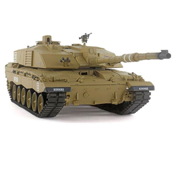 Remote control tank RC "British Challenger 2" (Heavy tank). Tank model of the newest generation, with firing sound, a model faithful to detail of the original. Track drive with two electric motors. The Challenger 2 tank is equipped with 2 LED headlights. The tower can be turned on 320 °, the cannon can be lifted / lower around 20 °.