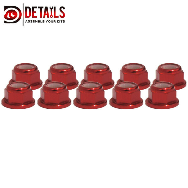 5. Hobby Details Flange Nylon Lock Nut M4 Regular CW Red (10)