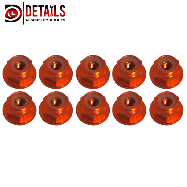5. Hobby Details Flange Nylon Lock Nut M4 Regular CW Orange (10)