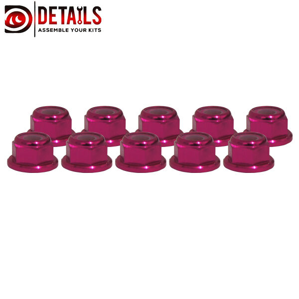 5. Hobby Details Flange Nylon Lock Nut M4 Regular CW Rose Red (10)