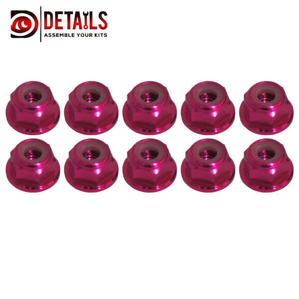 Hobby Details Flange Nylon Lock Nut M4 Regular CW Rose Red (10)