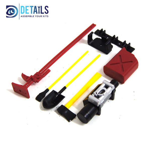 5. Hobby Details Scale jack/shovel/axe/jerry can/winch plastic 1/10th