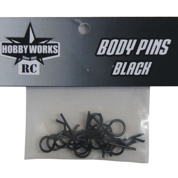 6. Hobby Works A304 Body Pins BLACK (10) 1/10th