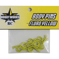 Hobby Works A300 Body Pins Fluro Yellow (10) 1/10th