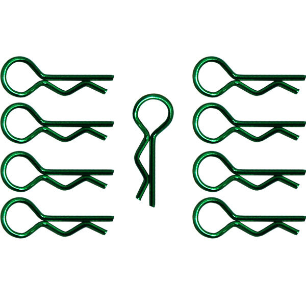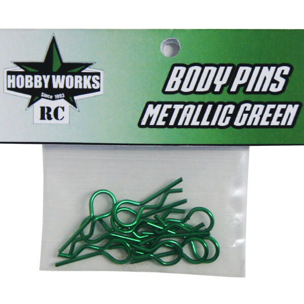 Hobby Works Body Pins Met GREEN  (10) 1/10th