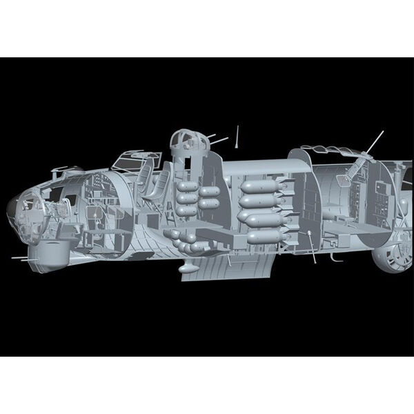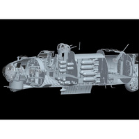 The B-17G was powered by 4 x Wright R-1820-97 "Cyclone" 1200hp turbocharged radial engines that were constantly uprated over the service life of the B-17, and it also carried 13 x 0.5cal M2 Browning machine guns. A typical long-range mission would see the B-17G carry around 4,500lbs of bombs. Wingspan was 103ft 9in, with a length of 74ft 4in. A Crew of 10 was typically carried by all variants of the B-17G.