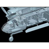 – detailed interior of the pilots’ cabin and bombardier’s compartment