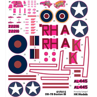 HK Models 01F015 is a high quality 1/48 scale model kit of the Douglas DB-7B Boston III , representing one of the key versions of this light bomber used by Allied forces in the first half of World War II. The Boston III was an export version of the Douglas A-20 , intended primarily for the Royal Air Force , but also used by the RAAF, RCAF and the Free French Forces .