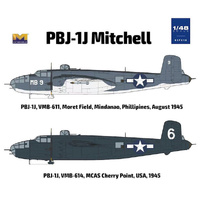 Marine Corps during World War II. Derived from the B-25J model, the PBJ-1J featured twin engines, a high mounted wing, and a glass nose typically housing a bombardier.