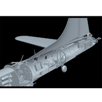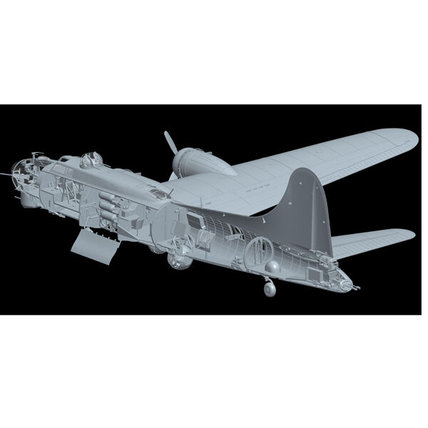 The B-17G was powered by 4 × Wright R-1820-97 “Cyclone” 1200hp turbocharged radial engines that were constantly uprated over the service life of the B-17, and it also carried 13 x .50cal M2 Browning machine guns. A typical long-range mission would see the B-17G carry around 4,500lbs of bombs. Wingspan was 103ft 9in, with a length of 74ft 4in. A crew of 10 was typically carried by all variants of the B-17G.