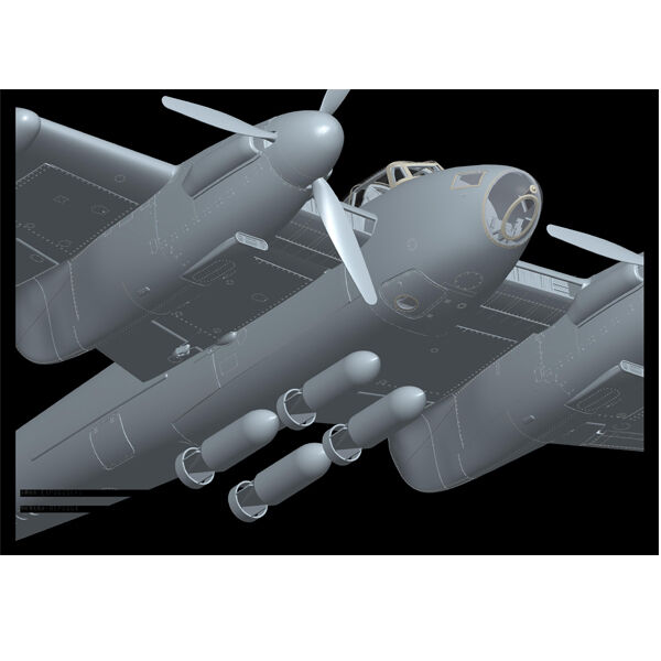 Undeterred, Geoffrey de Havilland took on the his design under a private venture arrangement, using a small design team led by Eric Bishop, and work began under strict secrecy at Salisbury Hall, Hertfordshire, in October 1939. The aircraft was to be designated ‘DH.98’. Even though de Havilland’s proposal was for an unarmed bomber, his team created a design, which would allow the installation of four, forward firing cannon that would sit in the forward belly of the aircraft, and fire through blast tubes.