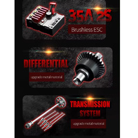 It features a powerful 2840 brushless motor with a 4000 KV rating, allowing it to reach a top speed of 70 km/h. The vehicle is controlled by a 2.4GHz frequency remote, ensuring a stable and interference-free connection over a distance of approximately 120 metres.