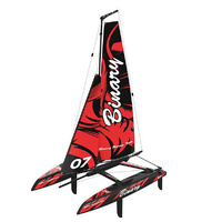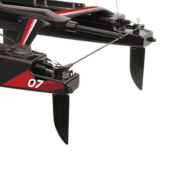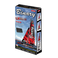 The sleek twin hulls cut though the water with ease and stability and turning are enhanced by the fin on each hull plus the deep twin rudders. The hulls and connecting frame are all moulded from durable plastic and the masts are made from extruded GRP giving the rigidity needed in a catamaran. The radio is Joysway's regular 2 channel 2.4Ghz design, proven over the years to be easy to use and reliable. The Binary comes as standard with a stand to rest her on which can be easily disassembled if required. The Binary brings the fun of sailing a catamaran into a very affordable sector of the market.