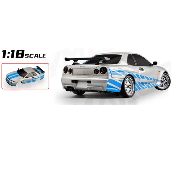 The LDRC 1899 1/18 RTR RC Drift Car GTR R34 is a high-performance drift car features a gyro system for precise control, LED headlights, and a realistic alloy body shell. The 2.4G 3-channel remote control ensures seamless handling, while the built-in 150 high-speed motor and metal drive shaft deliver powerful performance. Enjoy up to 30 minutes of racing with the included 7.4V 500mAh Li-ion battery