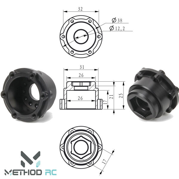 The 6 x 32mm / 21mm Offset Hex works in unison with any of our 6 x 32mm bolt pattern wheels. This particular offset works perfect for adapting our Array wheel with Terraform Belt Equipped tyre