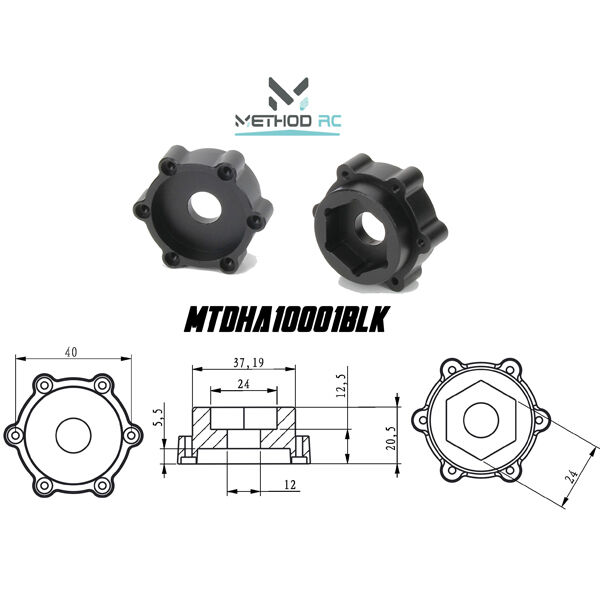 - 6 x 40mm / 12.5mm Offset 24mm Hex Adaptors x 2