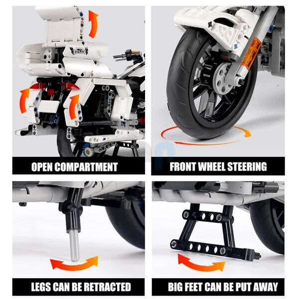 The front wheel linkage can steer the motorcycle tyres left and right.