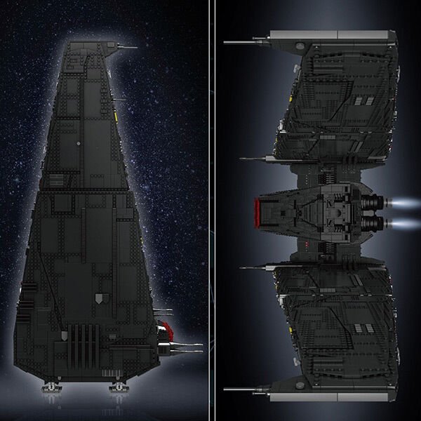 The Upsilon-class First Order Command Shuttle, a general-purpose transport vehicle used in Star Wars as an armoured shuttle for senior officers and high-ranking dignitaries. The Upsilon-class shuttle is equipped with two heavy laser cannons and a suite of advanced sensors capable of monitoring and seeking enemy side communications to effectively avoid hostile encounters.