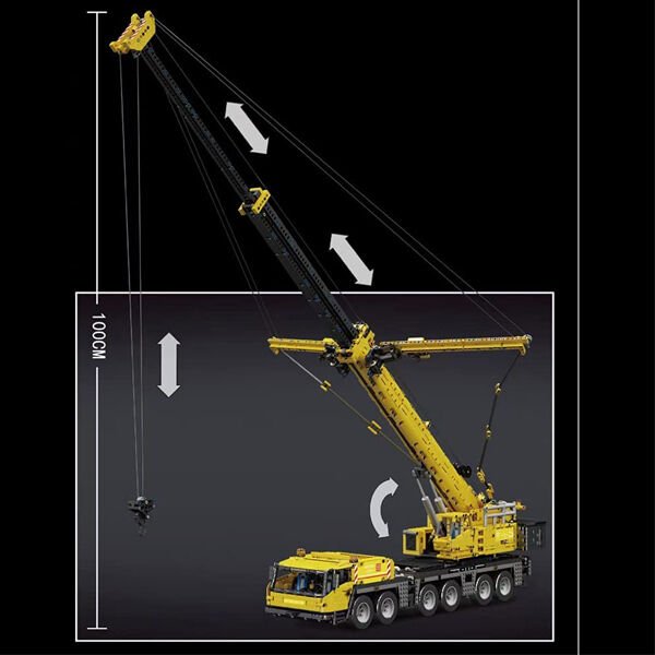 Activate the power function and select up, down, left, and right to control the crane in all directions. The upper structure rotates 360°, and the sturdy boom of the crane can be extended to a height of one metre. A series of powerful functions and designs make this model toy run like a real crane.