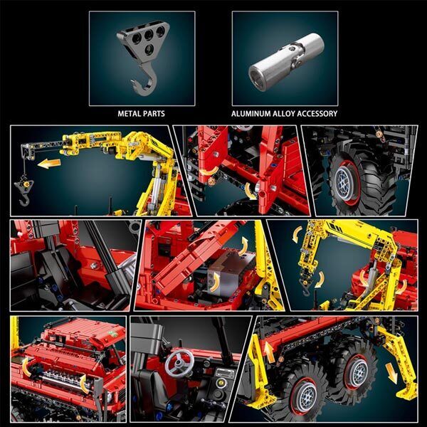 • Other features include: 360 degree rotation of remote control boom, remote control grab arm swing up and down, remote control middle arm swing up and down, remote control leg extension, aluminium alloy mechanical parts