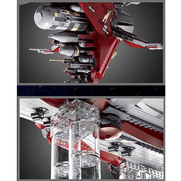 The Old Republic Escort Cruiser is also known as the hammerhead class cruiser. As the main force of the Republic, it usually serves as a messenger and command ship of large fleets in fleet engagements. This ship can also operate independently, and unlike the Foray-class blockade runners, it has never been observed outside of the supporting fleet. Hammerhead-class cruisers can enter the atmosphere and land on the surface of the planet. Mould King’s Old Republic Escort Cruiser has a wonderful replication of the shape and details of the cruiser.