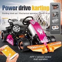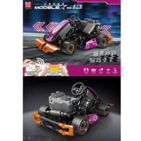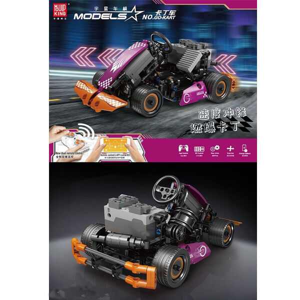 This Mould King RC Go-Kart building block set showcases a vibrant kart with a smooth body line and a retro low-key colour scheme.