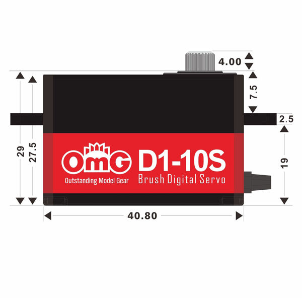 Special design for 1:10 RC car, low profile, aluminium brushed low voltage servo, middle cover in metal, top & bottom cover in plastic, metal gear. Entry level Servo