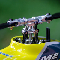 The OMP M2 EVO BNF Electric Helicopter takes the popular M2 platform to the next level. Featuring an updated flybarless head design, longer main blades, optimised brushless motors and adjustable tail boom length just to name a few,  this helicopter is truly an evolution of the M2. Built with a dual brushless motor direct drive main and tail system, M2 offers amazing simplicity and unheard of performance thanks to these high-powered brushless motor systems.