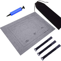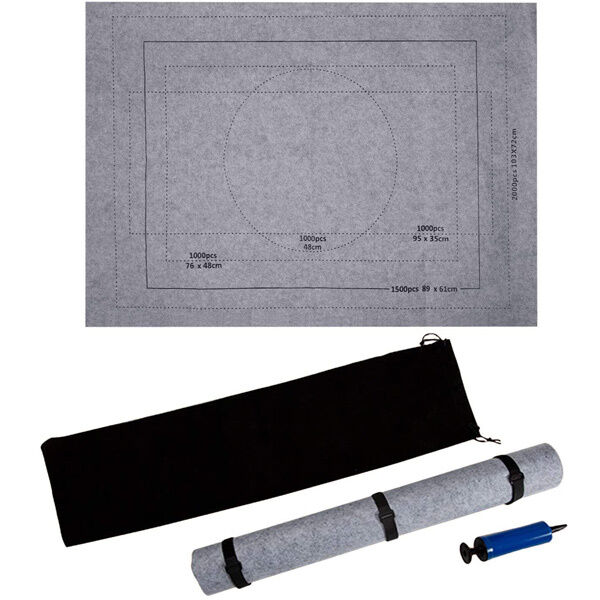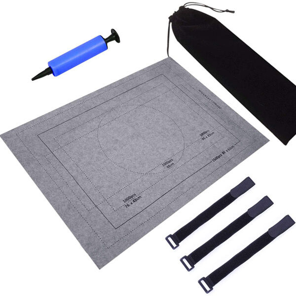 Comes with a grey felt mat, 1 inflatable tube, 1 air pump, 3 fixing bands and 1 storage bag