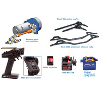 Inspired by the iconic Toyota Landcruiser, the Intruder features a realistic two door body with detailed interior decoration and a factory standard spare tyre. The chassis is engineered for extreme rock crawling, with a split transmission structure, four-wheel drive system, and a front mounted motor for optimal weight distribution. The servo mounted on axle shaft, panhard bar, and positive Ackerman steering angle provide exceptional manoeuvreability and control.