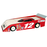 Dirt Oval Wedge Body 9”(230mm) wide. Comes clear with protective film and window masks. Fits Custom Works and other 1/10 scale dirt oval cars.