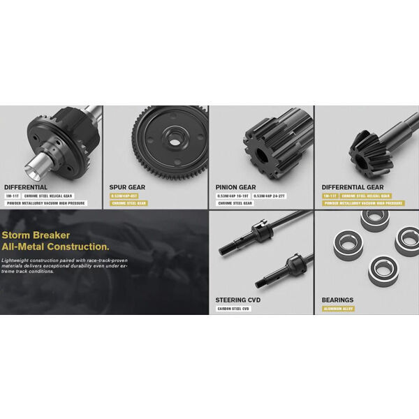 Metal front and rear differentials ensure consistent rotational speeds during turns and curved driving, while anti roll bars at both ends enhance vehicle stability and help prevent rollovers. A central differential handles power distribution between front and rear wheels for precise handling.