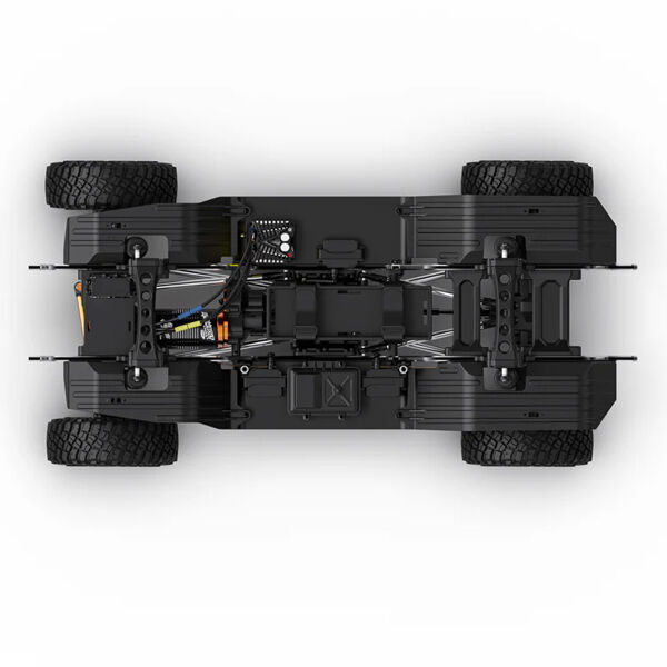 Front and rear differential design: The axle adopts 1.2m gears to enhance durability. These can lock and unlock the front/rear differentials to meet different driving needs and terrain. Unlocking the differentials during driving will provide smoother steering and a tighter steering radius. When the terrain becomes more challenging, locking the rear differential or locking the front differential will allow the tires to obtain better power distribution and allow the vehicle clear the obstacle easier