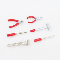 Contains 6 miniature tools (2 pliers, 2 screwdrivers, a hammer and an adjustable wrench)
