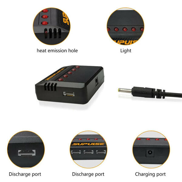 The Volantex Supulse 5 in 1 USB 1S 3.7V Micro 5-Port LiPo Charger offers a simple way to keep multiple 1S packs ready to go. Designed for 3.7V 1S LiPo batteries, its five port layout allows you to charge several batteries at the same time, helping to streamline your charging routine.