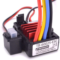 Forward: Continuous current / peak current 25A/100A Reverse: Continuous current / peak current 25A/100A Supported voltage range: 1-2 lithium battery (Lipo) or 4-6 nickel-metal hydride (NiMH) battery 1 lithium battery (1S only supports lithium) 030, 050, 280 size motor RPM is lower than 300007.2V 2 lithium batteries or 6 nickel-metal hydride: 280, 370 or 380 size motor RPM is less than 300007.2V Internal resistance (single bridge arm): Forward rotation: 0.003?, reverse rotation: 0.003? BEC output: 1A / 6V (linear regulator mode)