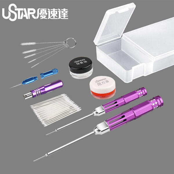 Storage box, 1 1.2-caliber parts handling tool, 1 1.4-caliber parts handling tool, 1 nozzle handling clip, 1 metal cleaning needle, 1 set of cleaning brushes, cotton 1 pack of sticks, 1 box of resistance oil, 1 box of maintenance oil